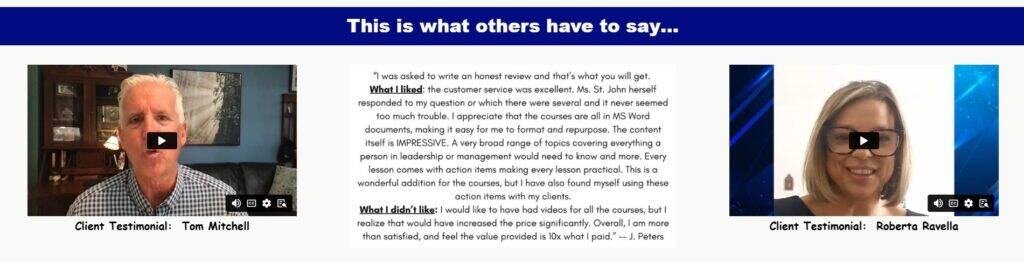 Client testimonials (go to the product page to watch and read in full)