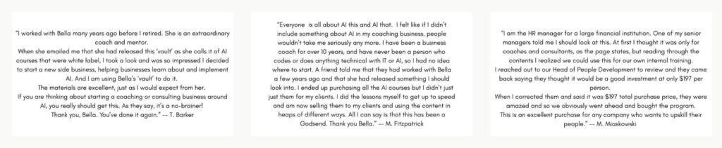 The AI Vault is a complete suite of 75 professional, white-label AI courses (over 1500 individual lessons/elements) that coaches and consultants can rebrand and resell as their own. It’s a genuinely valuable product that sells itself to the right audience — and your people are exactly that audience.