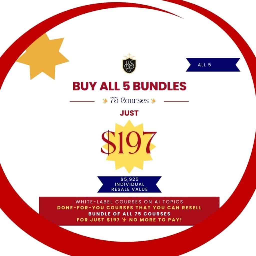 Bundle the of 75 individual courses on AI topics for only $197 – no more to pay – you keep 100% of the profits!