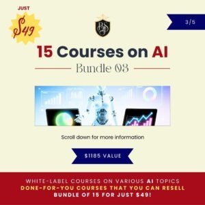 Bundle the of 75 individual courses on AI topics for only $197 – no more to pay – you keep 100% of the profits!