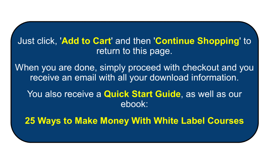 …and if you want ideas on how to make money using them, we include our “25 Ways to Make Money With White Label Courses” ebook