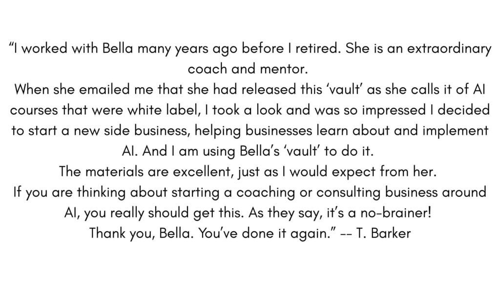Think about how much more you would pay to a coach or consultant who had a range of online courses as part of their portfolio of offerings VS a similar professional who didn’t…  That difference in price is just part of what it is costing you to NOT add white label courses to your business.